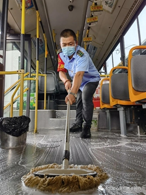 唐山公交五公司班子成員下路隊、上公交、對每一輛車的車容車貌、衛(wèi)生情況開展檢查,發(fā)現(xiàn)問題后隨手拿起抹布對保潔人員、司機(jī)做起清潔車廂的示范,三個路隊的路隊長更是利用所有業(yè)余時間對車輛進(jìn)行大清掃。為了讓車輛清掃活動開展的更加有成效,鄭斌經(jīng)理要求每隊提出一個衛(wèi)生口號,于是“人手一塊小抹布” 、“安全人人管 衛(wèi)生人人干”、“人人做整理 場站有條理 全員做清掃 車廂更美好”等口號,夾雜著汗水伴隨著職工大清掃的熱情,讓車輛衛(wèi)生清理達(dá)到了“潔”的效果。截止到目前為止,五公司完成現(xiàn)有202輛公交車、7個公交場站、9個發(fā)車點的衛(wèi)生百分百清理與復(fù)查整改。值得一提的是,屈莊公交車場在環(huán)境雜亂、設(shè)施設(shè)備不足的情況下,依然在總公司“四項”重點工作推進(jìn)檢查中得到督導(dǎo)組的認(rèn)可和表揚。三隊的管理人員更是在開展衛(wèi)生大清掃活動中起到了帶頭作用,還創(chuàng)造了許多衛(wèi)生清掃“小竅門”,比如馬翯書記用自行購買的吸塵器清理駕駛室內(nèi)的腳踏板,防止了用水沖洗造成的電路短路不安全隱患,由李旺隊長發(fā)現(xiàn)并在全公司推廣使用的海綿擦代替鋼絲球擦洗,防止了過度清潔對車身造成的損壞。