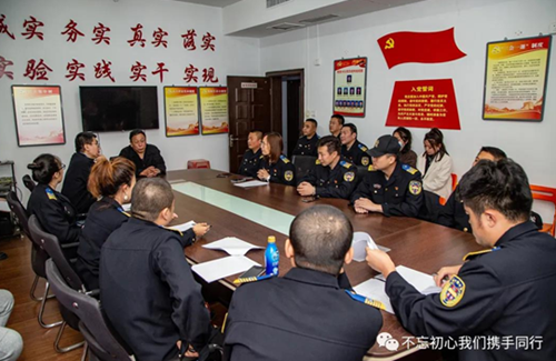 隊長田國華在對全大隊開展工作思路轉(zhuǎn)變會議時曾說:“公交是公益服務(wù)型企業(yè),我們是稽查的隊員,但我們更是公交企業(yè)職工,我們有服務(wù)社會、服務(wù)企業(yè)、服務(wù)一線的職責(zé)”,同時提出以“人”的轉(zhuǎn)型,促進“事”的轉(zhuǎn)型工作思路,逐步實現(xiàn)稽查大隊轉(zhuǎn)型“服務(wù)”型團隊。在疫情之初,唐山公交歷史上首次出現(xiàn)停運的罕見情況,稽查大隊原本可以在此期間全員輪休,但是為助力企業(yè)做好疫情防控的各項工作,他們主動請纓,每天清晨5點多鐘就駐守在公交各個場站一直到夜晚,幫助各場站做好消殺工作。一年多來,稽查隊員駐守公交場站無一次人員遲到、早退的秘訣是:每天無論多早、多晚,田國華大隊長都會在大隊工作群內(nèi)發(fā)布第一個按時到崗、最后一個退崗的隊員自拍照,并“@點贊”,用“以人為本”的關(guān)注方法,激勵和促進隊員的工作積極性。在今年夏天連續(xù)暴雨的極端天氣時,隊員們?yōu)榉乐闺妱庸卉囘M水,在公交車必經(jīng)之路,用最原始的方法——站立在積水區(qū)提示和指揮公交車輛繞行,保障公交車輛安全行駛、保護企業(yè)財產(chǎn),護航每一名乘客;更是在常態(tài)化創(chuàng)城工作中,派出所有隊員對全市涉及到的2700余個公交站點、站牌,2300余個公交候車亭進行了多次拉網(wǎng)式全面檢查。