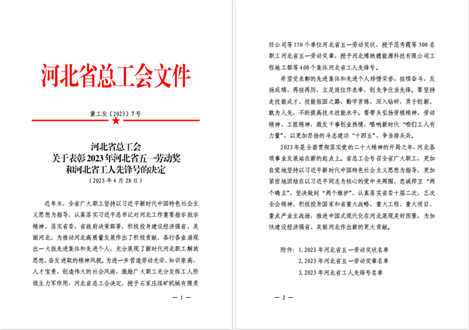 2023年4月28日,河北省總工會發(fā)布《關(guān)于2023年河北省五一勞動獎和河北省工人先鋒號的決定》,唐山交發(fā)集團(tuán)公交總公司二公司 2 路營運(yùn)車隊被授予2023年“河北省工人先鋒號”榮譽(yù)稱號,唐山交發(fā)集團(tuán)公交總公司四公司 46 路駕駛員翟澤明被授予2023年河北省五一勞動獎?wù)隆?/span>