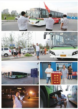 一隊司機付明東、劉文軍、趙金剛、于洋、張耀強、尹雙東、張波、田亞軍主動在下班后放棄休息時間參加世園會夜場直達車的運營,并且?guī)椭燮比藛T售票。