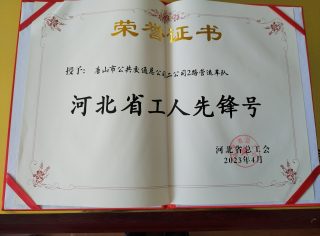 2023年4月28日,河北省總工會(huì)授予唐山公交總公司46路駕駛員翟澤明河北省五一勞動(dòng)獎(jiǎng)?wù)?,授予唐山公交總公?span style="padding:0px">2路營(yíng)運(yùn)車隊(duì)河北省工人先鋒號(hào)。