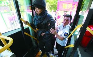 夫妻倆看到當(dāng)時值班司機(jī)馮達(dá),感激一笑。趙淑榮攙扶起輪椅上的丈夫,這時有一雙手給了她有力的支撐。原來,司機(jī)馮達(dá)在看到夫妻倆時,早已來到趙淑榮身邊,幫著她一起把江偉扶上公交車。一邊扶著老人,馮達(dá)一邊提醒車上的市民,“麻煩哪位好心人給這位老人讓個座,謝謝大家了。”