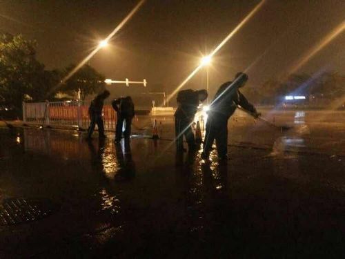 23時43分,很多人已進入了夢鄉(xiāng),此時公交場站的工作人員正在清理加油站積水,凌晨雨勢漸弱他們才放心收隊。