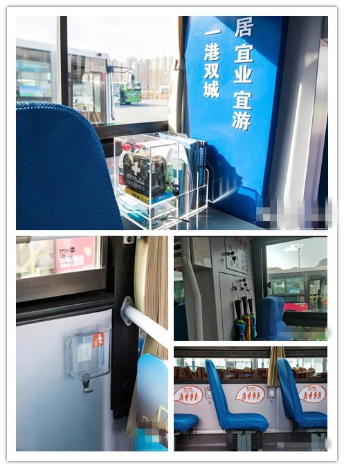 “一港雙城”示范車廂內(nèi)設置了服務小棧,內(nèi)有急救包、飲用水、手機充電寶、老花鏡、雨傘、唐山旅游宣傳圖冊等方便乘客隨時使用。在每個靠窗的座椅處,還設置了小型的垃圾收納盒和置物掛鉤。此外,駕駛員學習強國信息小播報,在平峰期首末站時,為乘客播報一些當前的事實信息,豐富乘客乘車體驗。