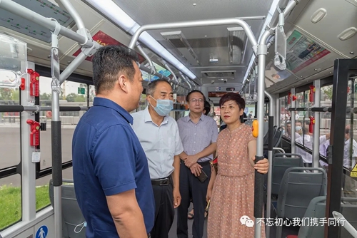 隨后,市政協(xié)視察組一行登上了新投入使用的30路純電動公交車進行體驗,對新公交車的各項新功能進行了解,并就新投入使用的純電動公交車的安全性能、乘坐舒適度、電池續(xù)航里程以及疫情防控常態(tài)化下公交運營、公交司乘人員的文明服務、老年人乘坐公交車等情況同公交管理人員進行了深度交流。