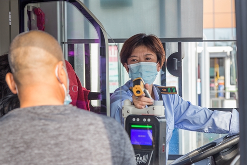 嚴(yán)格落實(shí)常態(tài)化疫情防控工作舉措,運(yùn)營(yíng)車(chē)輛堅(jiān)持消毒通風(fēng),重點(diǎn)對(duì)車(chē)廂地板、司機(jī)方向盤(pán)、車(chē)窗開(kāi)關(guān)、座椅扶手、車(chē)內(nèi)欄桿、刷卡機(jī)、投幣口等部位進(jìn)行消殺,加強(qiáng)通風(fēng)換氣,保持空氣流通。公交司乘人員佩戴口罩上崗,同時(shí)提醒乘客佩戴口罩乘車(chē),共同打造安全健康的出行環(huán)境,讓乘客安心上車(chē)。