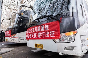 “您好!您是要去邢臺的醫(yī)務(wù)人員吧?我們先將行李幫您搬上大巴車,外面冷,您坐車?yán)锱汀?rdquo;1月14日中午,唐山公交公司鳳凰國際旅行社安排2輛大巴和相關(guān)工作人員到唐山市市政府門前,等候從各縣區(qū)趕來的醫(yī)務(wù)工作者。為了順利保障此次護(hù)送任務(wù),唐山公交選派了4名技術(shù)能力過硬、責(zé)任心強(qiáng)且具有奉獻(xiàn)精神的駕駛員出征。為圓滿完成此次任務(wù),公司提前做好全面預(yù)防性消殺和人員防疫安全工作,為車輛和駕駛員配備了測溫槍、消毒劑和充足的防護(hù)口罩,并囑咐他們要勤更換,從方方面面確保駕乘人員安全。