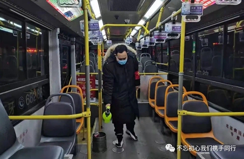 凌晨5:20,等待發(fā)車的我迎來幾張陌生面孔,莫不是新入職的駕駛員?原來他們暫時不能承擔駕駛員的工作,但是他們加入了防控的隊伍。為準備上崗的駕駛員測量體溫,給運營車輛在出車前、收車后集中消殺通風(fēng),針對乘客易接觸的投幣箱、扶手、座椅等部位重點消毒,嚴格執(zhí)行一趟一通風(fēng)、一趟一消殺。老搭檔告訴我,只有接受消毒噴灑的洗禮,才能躋身抗擊疫情的行列。“來吧,我身經(jīng)百戰(zhàn),怎會退縮!”一切準備完畢,出發(fā)。