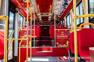 整條線路以黨史和黨的路線方針政策為主題,在車廂內(nèi)進行了多種方式的宣傳:車內(nèi)方便乘客站立時使用的小小拉環(huán),一面是“唐山黨史”公眾平臺二維碼,乘客可用手機掃碼,利用乘坐公交車的間隙學習黨史,另一面是黨的歷史大事件、十九大精神等內(nèi)容;主題車廂以紅色背景為主基調(diào),對中國共產(chǎn)黨百年歷程的重大決策、重要會議、重大歷史事件,設(shè)計制作了圖文并茂的宣傳畫,在車廂內(nèi)進行展示。